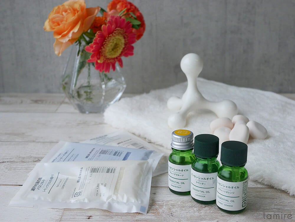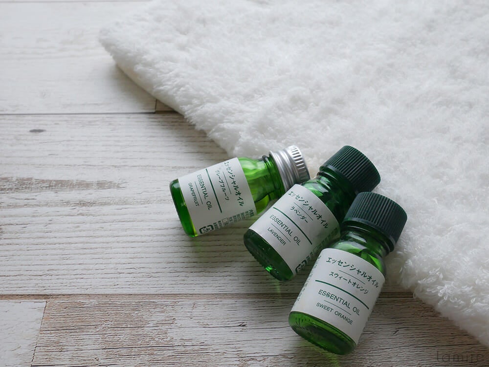 お風呂の中でもアロマの香りを楽しみませんか?無印では1,000円前後でエッセンシャルオイルを購入することができるんです!