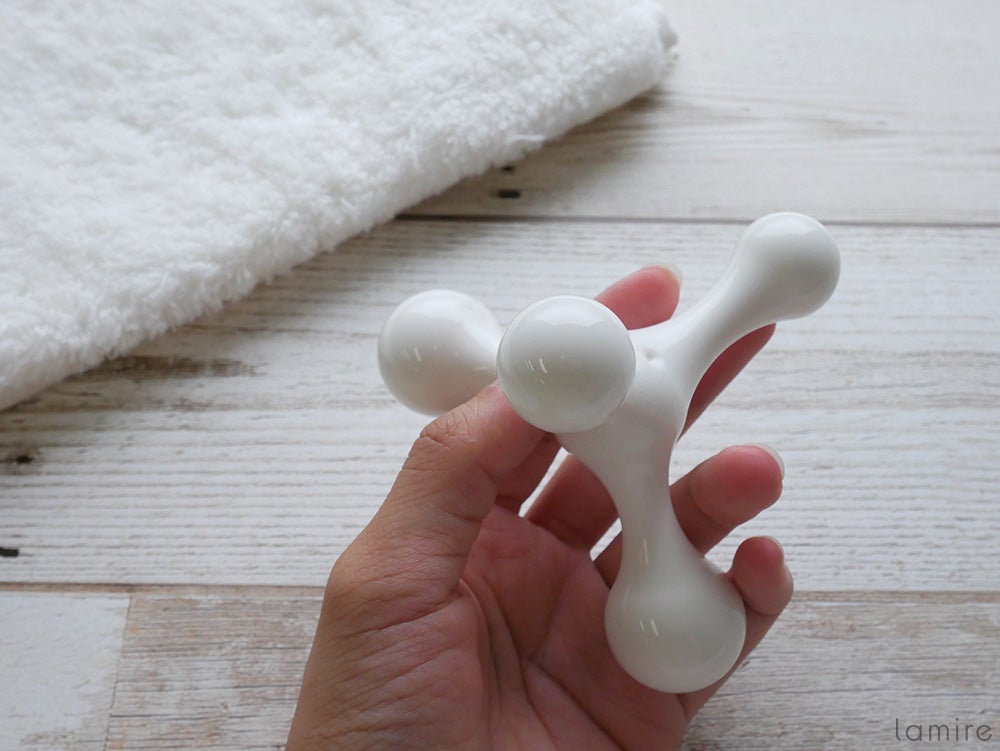 サイズ感が丁度よく、肩にもふくらはぎにも不思議とピタッとフィットしますよ。湯船に浸かりながらすべらせて、むくみやコリをすっきり解消。使い方に決まりはないので、適当にコロコロと転がすだけでもOKです♡