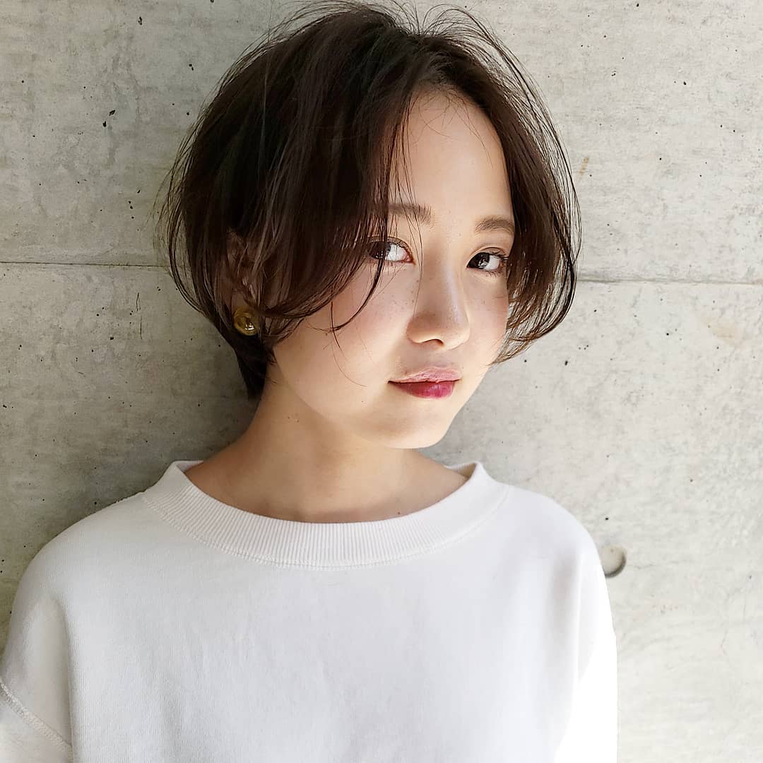 コンパクトなショートヘアは、輪郭を隠すよりも出してしまった方が小顔効果に期待できます。きっちりとまとめたこのスタイルはナチュラルさが◎暗めカラーで少しスパイスを足してあげるのがポイント高め!