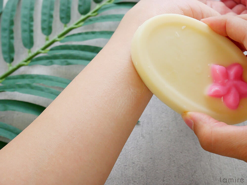 「抱擁の満月」は、珍しいフェイシャル美容バー。洗顔後すぐの肌になじませて、マッサージしながら浸透させていきます。マッサージ後は、植物由来のバターやオイルが角質層まで行き届き、手のひらに吸い付くようなしっとりとしたお肌に。 美容液や化粧水前のブースターの代わりとして、使用している人も多いそうですよ。