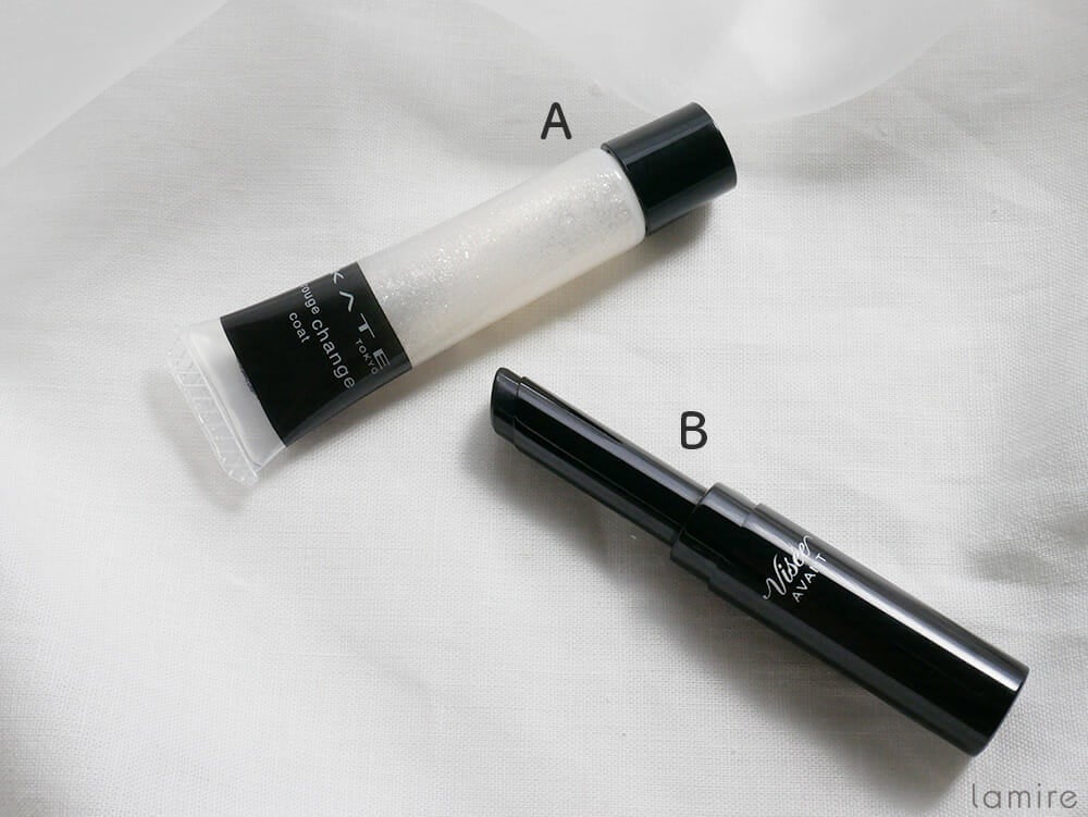 A.ケイト ルージュチェンジコート 03 700円(価格は編集部調べ)/カネボウ化粧品 B.リップスティック 015 1,600円(価格は編集部調べ)/ヴィセ アヴァン