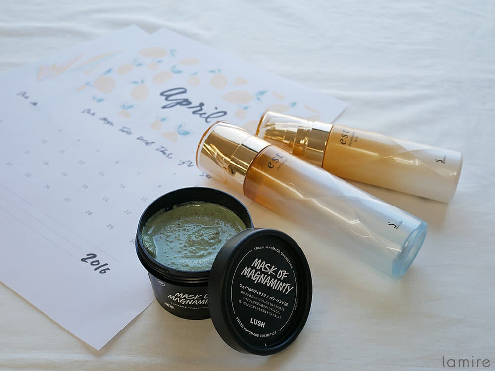 おやすみdayを経て、肌の調子も大分回復した日曜日。ここで油断せず、明日からの仕事に向けて最終調整。自分なりのスペシャルケアで、肌を最高の状態に持っていきましょう!理想はいつもの倍の時間を使って、しっかりとケアすること。