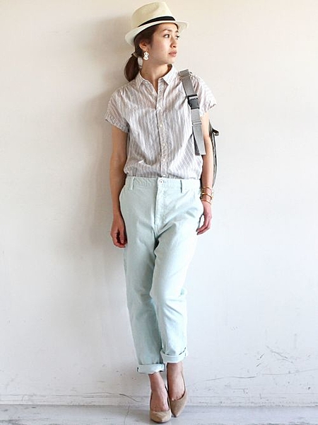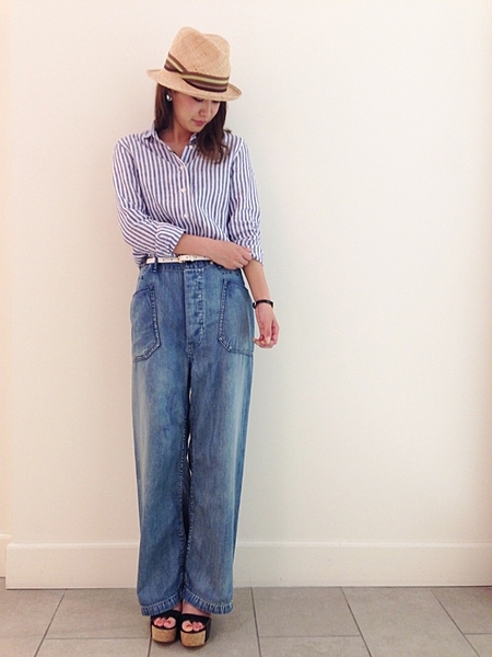 ストライプシャツ+パンツスタイル♪