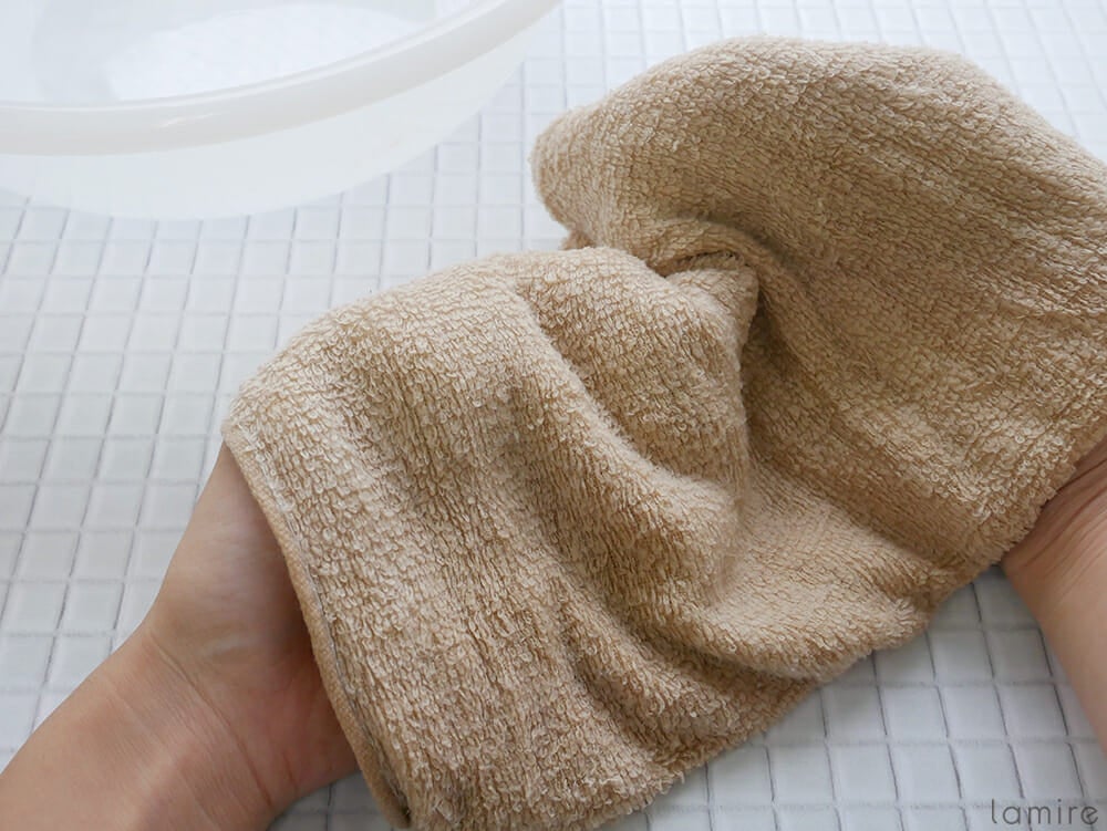 ぬるま湯で洗い流したら、蒸しタオルを2〜3分ほど顔にあてていきます。蒸しタオルを使って毛穴を広げてあげることで、この後行う洗顔&スキンケアの効果を高めることができるんです。毛穴の奥に詰まった汚れを落とす為にも、この行程はしっかりと…!