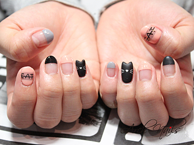 シンプルなネイルデザインの時は猫耳ネイルがメインポイントに!