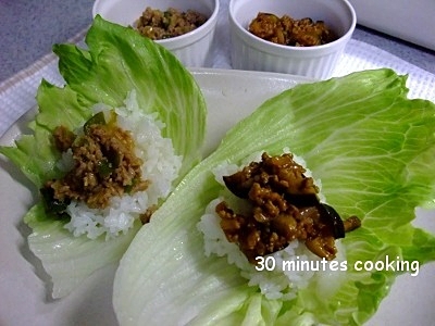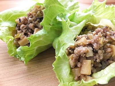 楽天レシピ:「ピリ辛肉味噌のレタス巻き 」より