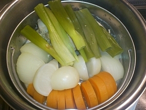 ■蒸し野菜のクリーミーチャウダーでつけスパゲティ☆