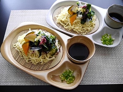 ■蒸し野菜と海藻たっぷり♪ざる麺