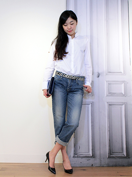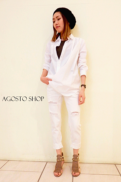 ダメージデザインのジーパンを、大人きれいきこなしておしゃれ上級者を目指して。合わせるトップスで色々な表情を見せてくれること間違いなし!