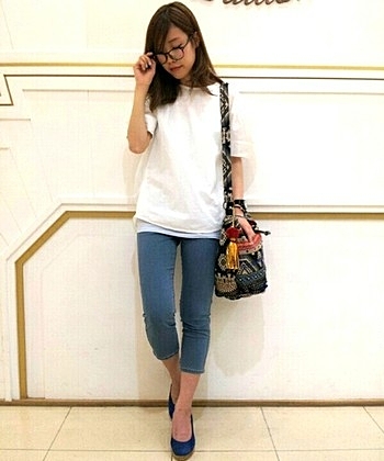 白のジーパンは、どんなトップスでも大人きれいにみせてくれる優秀アイテム。きれいな色を合わせると鮮やかな着こなしに♡
