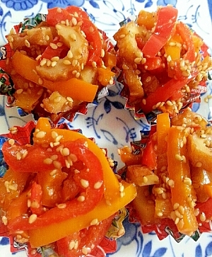 お弁当のおかず◎カラーピーマンと竹輪の甘辛炒め