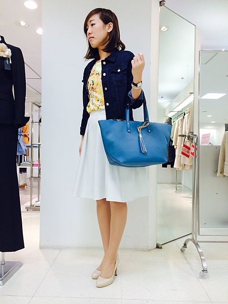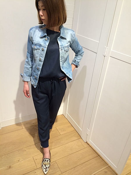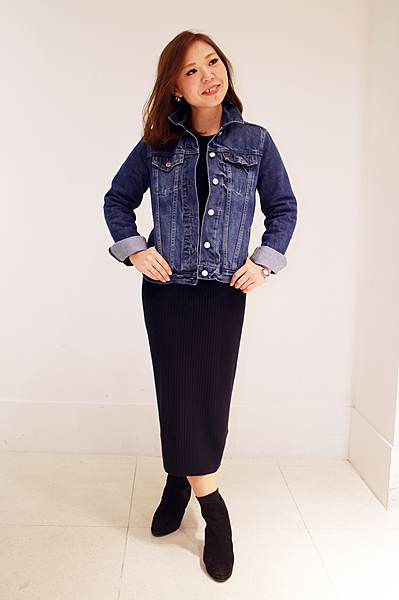 濃いめカラーのジージャンは薄目カラーのボトムに合わせれば使いやすい!