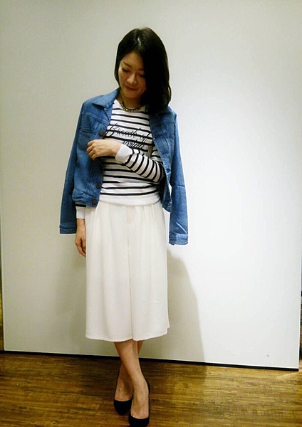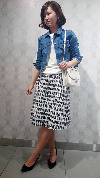 ロングスカートに合わせるならこのくらいタイトで丈が短めなジージャンのが着こなしやすいですよ♡