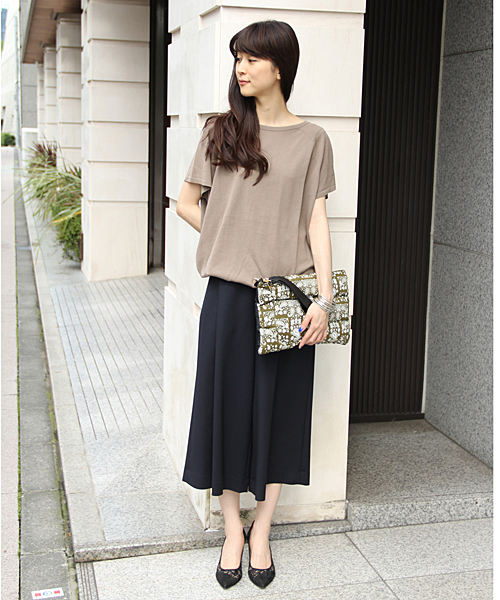 シルエットの美しいガウチョパンツ。