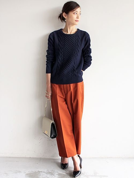 秋はスカートっぽいシルエットのものを選ぶと、合わせやすいですよ。