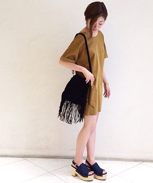シンプルなワンピースと合わせて