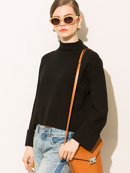暗色ニットトップスには