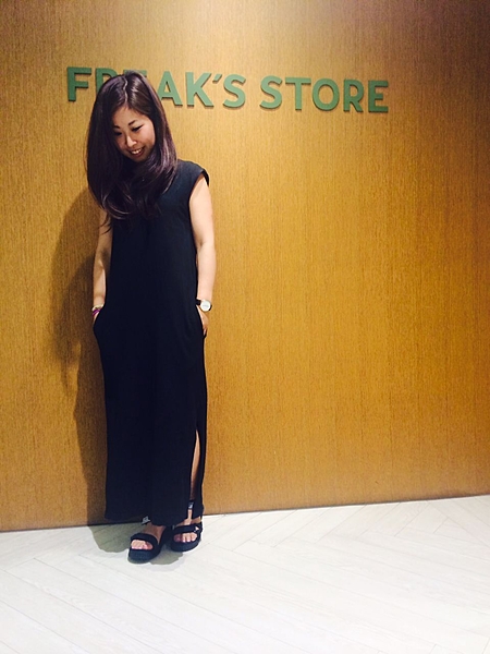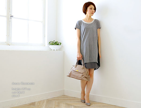 シンプルになりがちなブラックコットンワンピースも、裾のデザインが一味違う印象に。1枚で清楚なコーディネートが完成します。