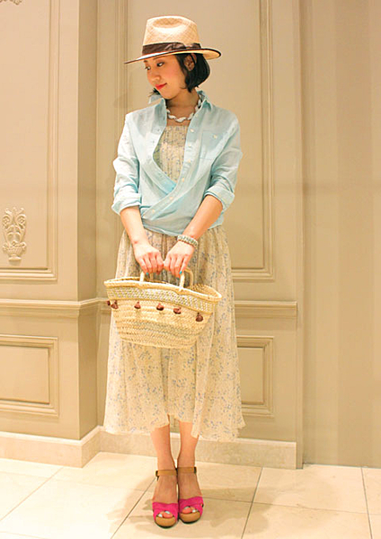 シャツコットンワンピースも、このくらいヴィヴィッドカラーを使うと清楚な中にも健康的な印象に。