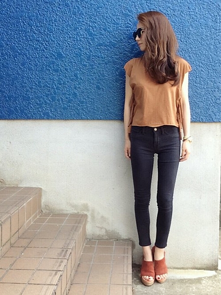 茶色のサンダルも、ヒールの高いものを選べばクールにキマる!
