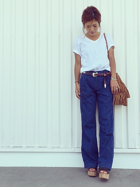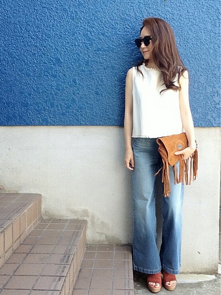 そんなあなたには、ブラウンのシューズやバッグで少しヒッピー風に仕上げるのがオススメ!