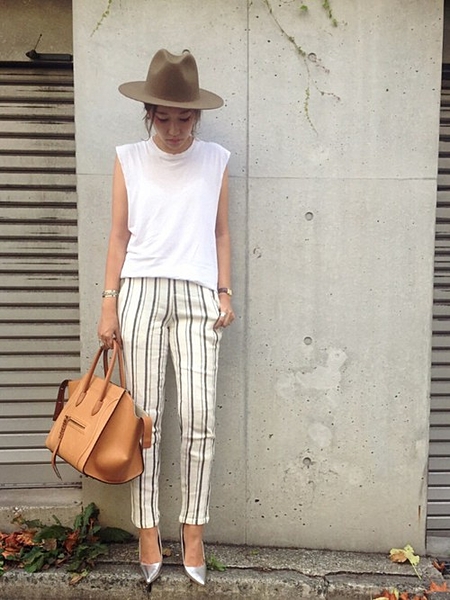 キレイめで大人なスタイルが好きなあなたは、ハットやバッグを組み合わせるのがオススメ。