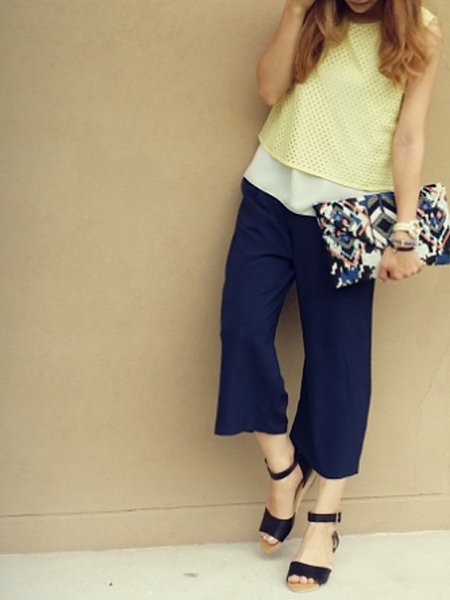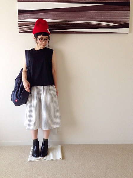 ノースリーブ×ガウチョパンツの組み合わせにも