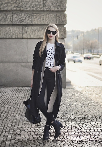 ロングコートはさらっと羽織るだけで大人っぽくなるアイテム。ボタンを締めても開けても印象が変わるので、便利なアイテムです。