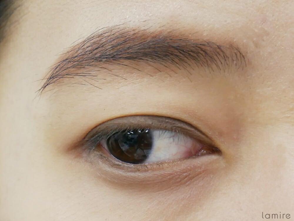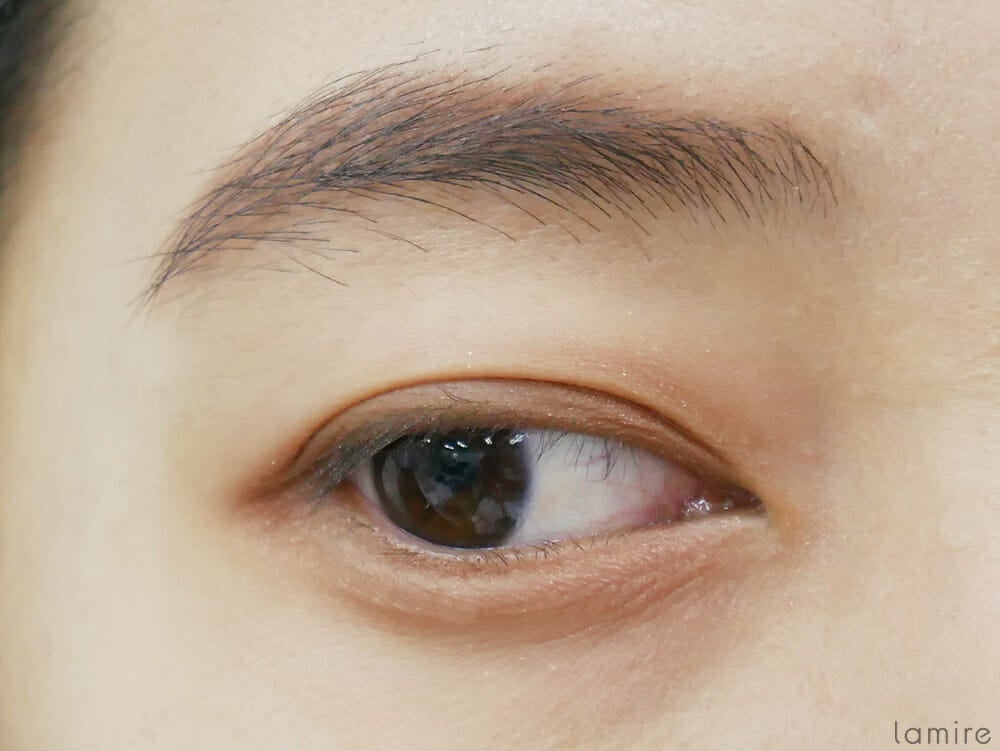 カシミヤを使ってアイメイクを施してみました。スモーキーなブラウンが薄いヴェールをかけたように広がって、上品な目元になりましたよ。