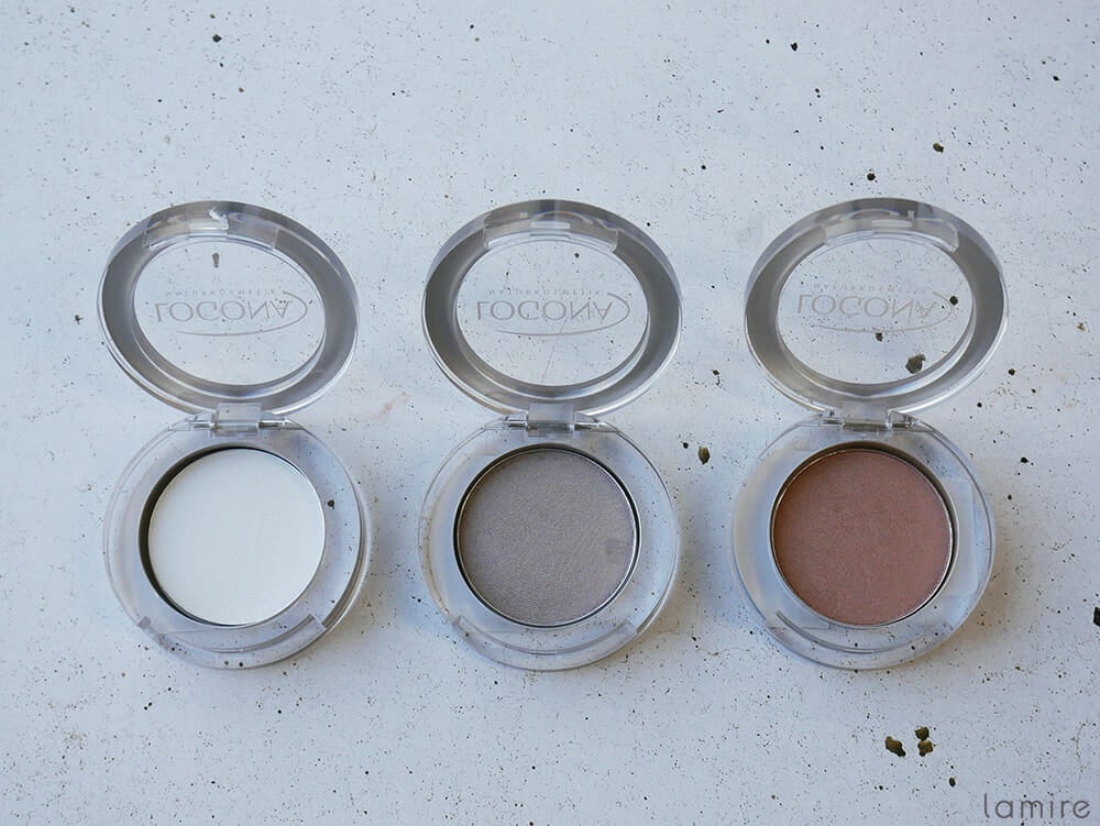 アイシャドー<モノ>(左から)03ライトサテン、01トーブ、02チョコレート 各2,160円/ロゴナジャパン