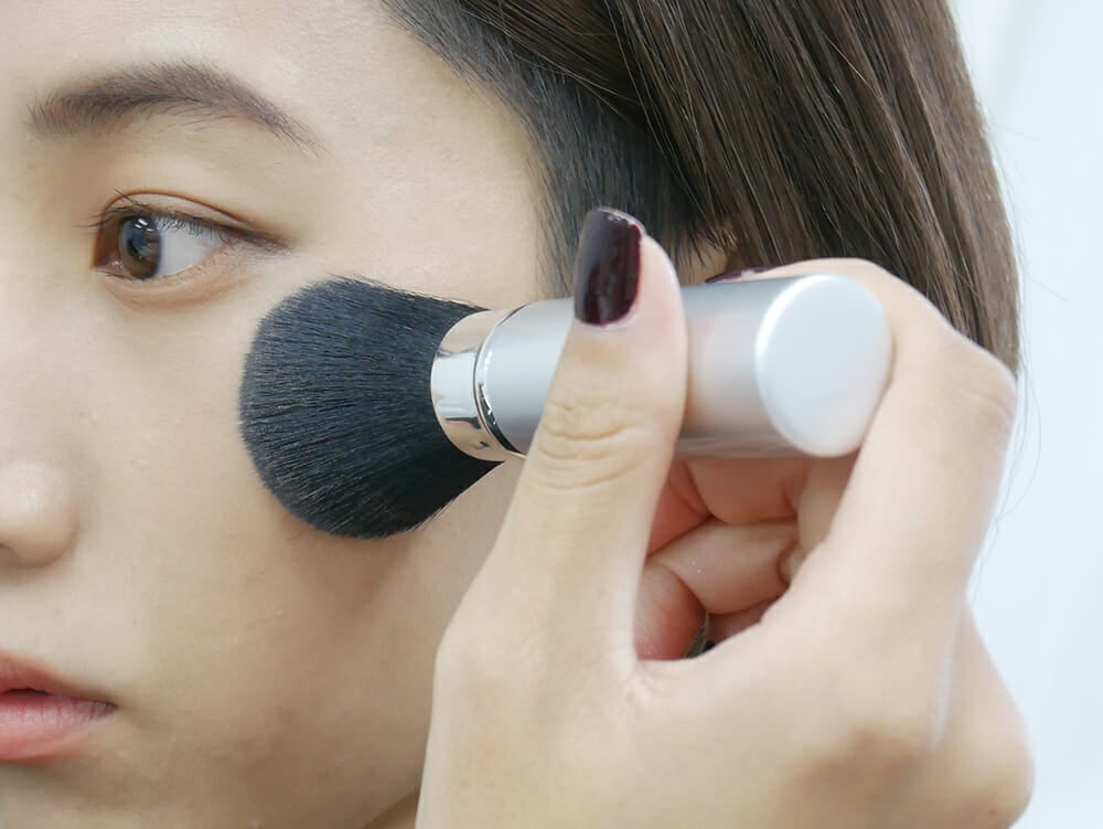 ブラシに軽くとって、さっとひと刷毛するだけでパッと明るい表情に!指にとって鼻筋や目元に使ってもいいかも!