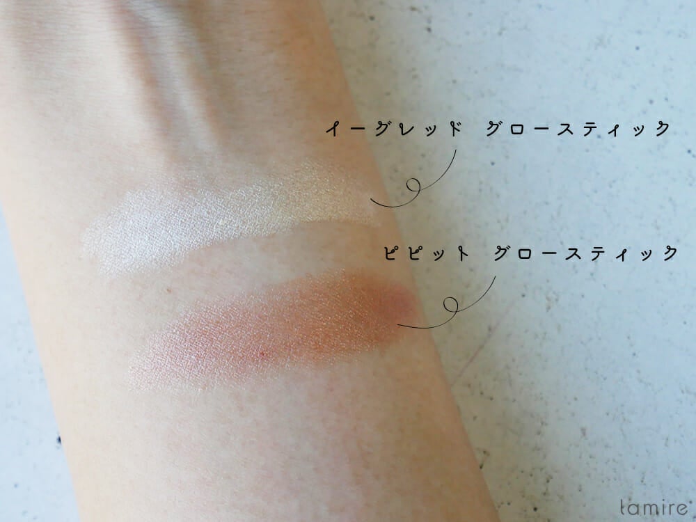 イーグレットは虹色の光沢を放つパールカラー。気品溢れる輝きが特徴です。ピピットはコッパー調のローズゴールドカラーで、まるで太陽に照らされたような輝きを肌にもたらしてくれます。