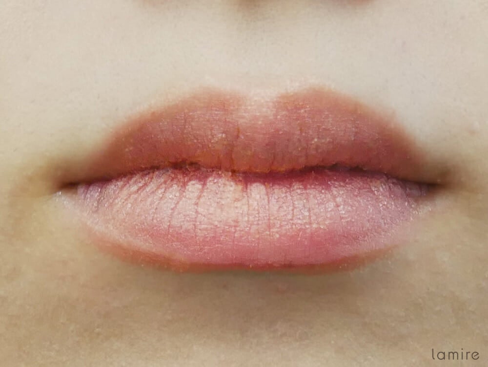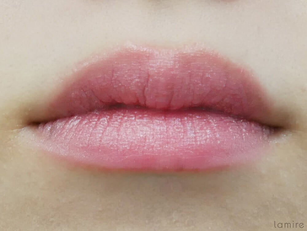 リップにすると、チークで使った時とは少し違った発色に。女性らしいピンクブラウンで、ナチュラルメイクにぴったりだと思いましたよ。