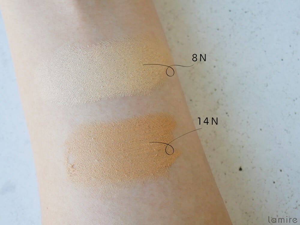 今回試してみたのはニュートラルカラーの2色。どちらも滑りが良く、肌にしっとりと馴染むような使い心地でした。ココナツオイルが45%も配合され、しっとり柔らかな肌を作り、メイクするたび美しい肌へ導いてくれます。