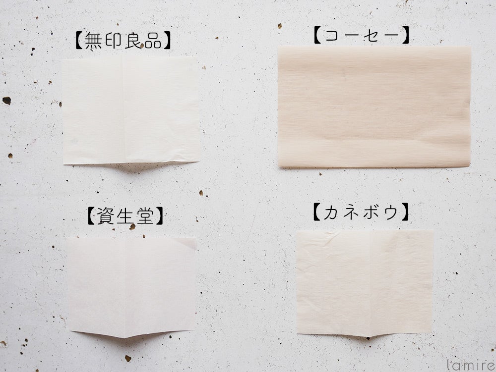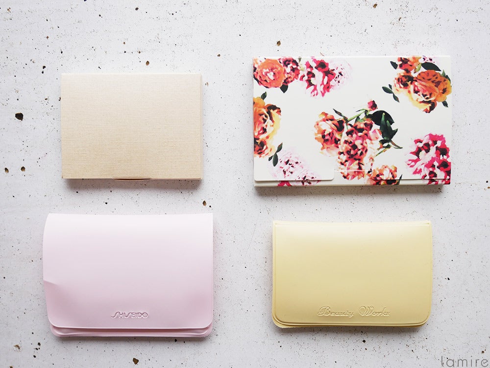紙おしろいとして有名なのは、この4つ。一見あぶらとり紙のような見た目ですが、どれもしっかりおしろいの役目を果たしてくれますよ♪この4つを詳しく紹介していきます。実際に紙おしろいを塗ったところは記事後半を見てくださいね。