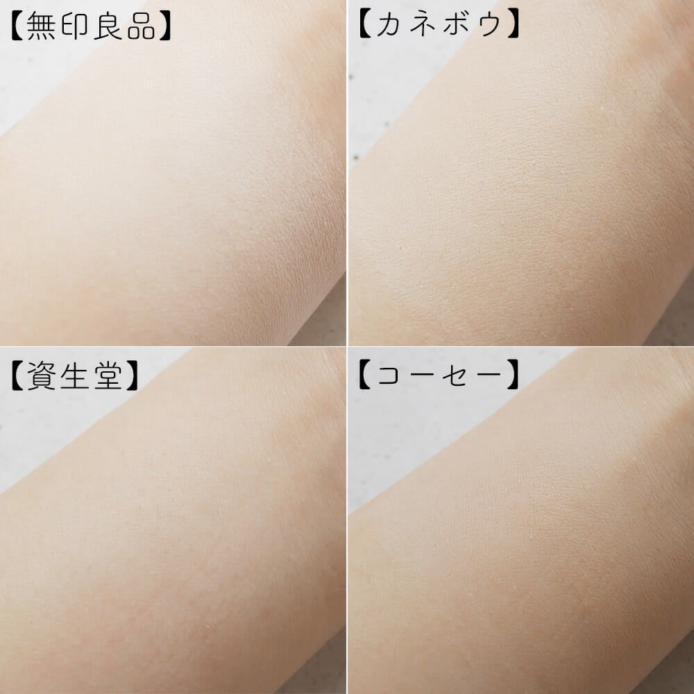 パウダーの付き方や量には大差がなくどれも同じような付き方でした。おしろい効果で白肌も狙えそうです!