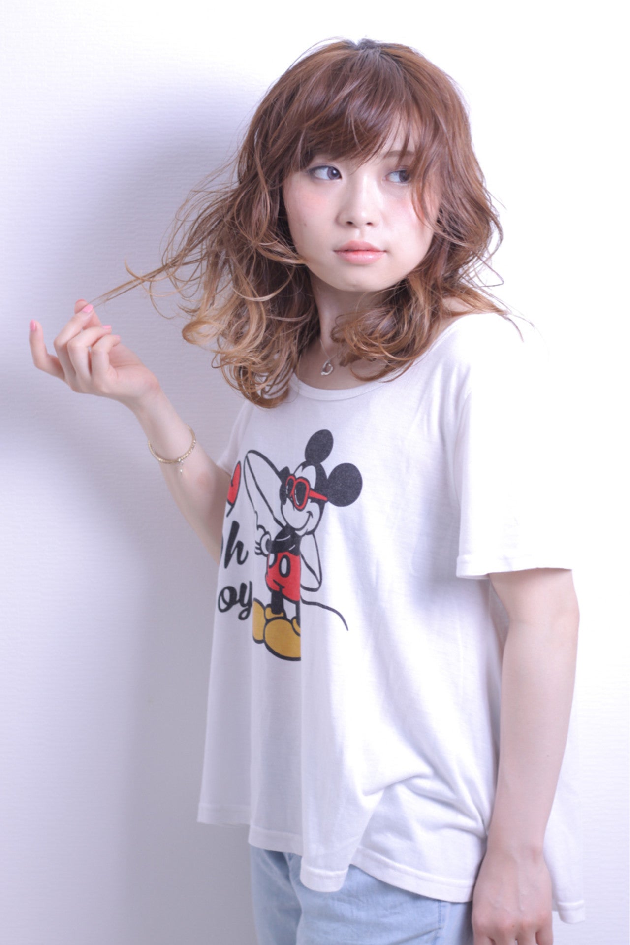 毛先の髪を指でくるくるとねじりながらMIX巻きっぽく仕上げるのも◎。ハネが気になりません。