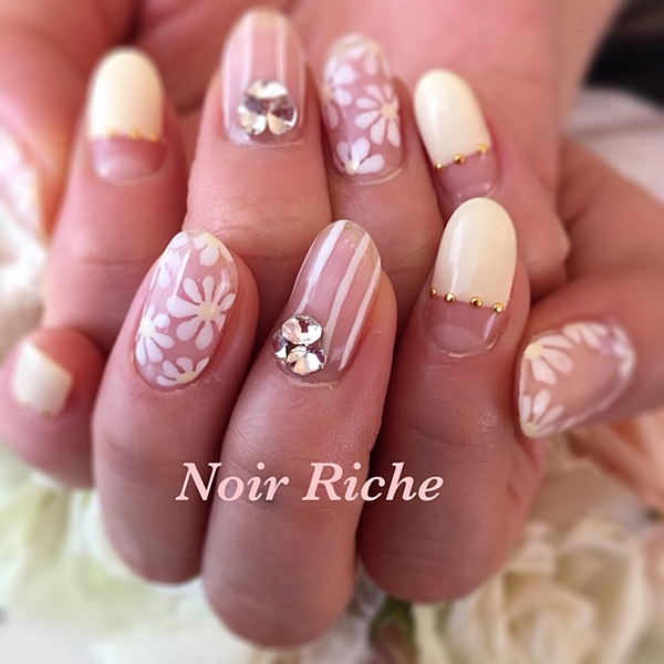 指先にをまとわせて爽やかガール。白レースネイルデザイン...