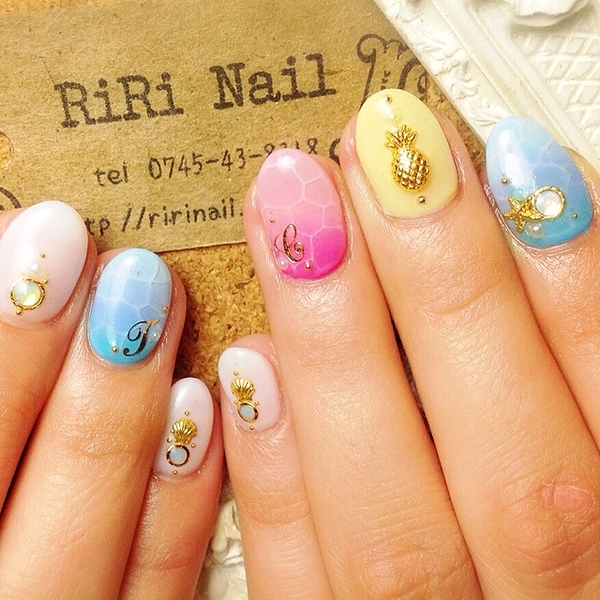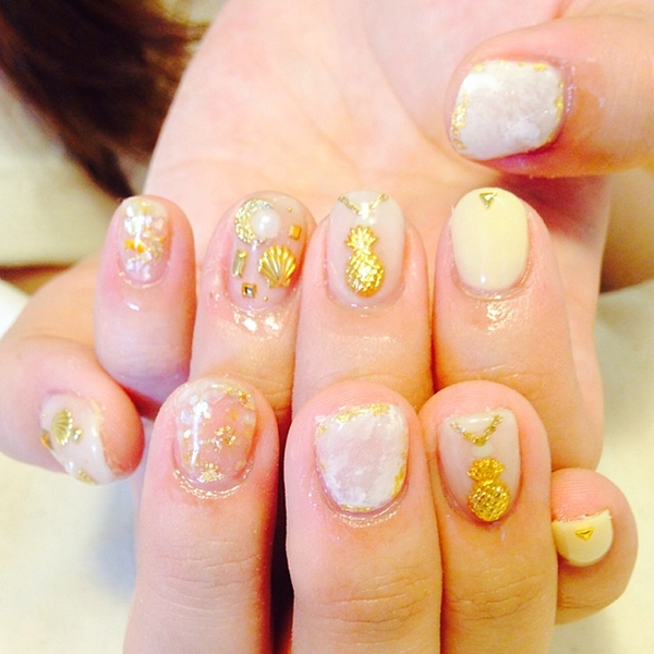 夏の旅行にパイナップネイルはぴったりですね!