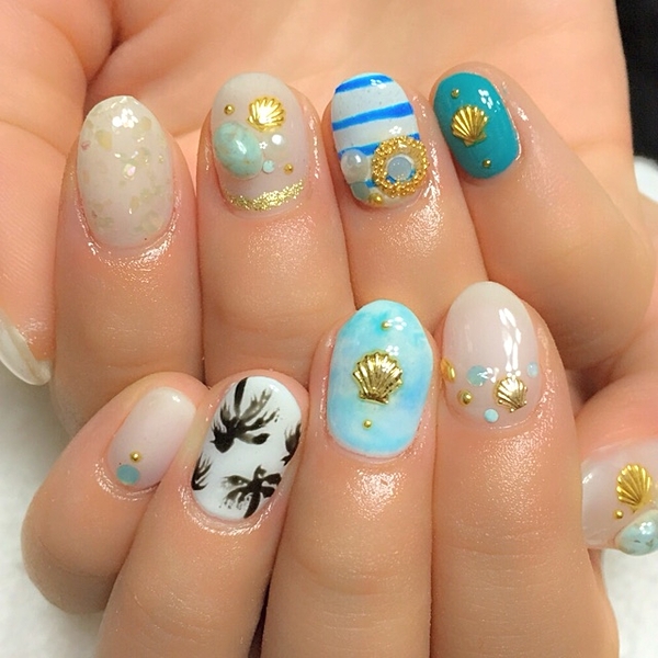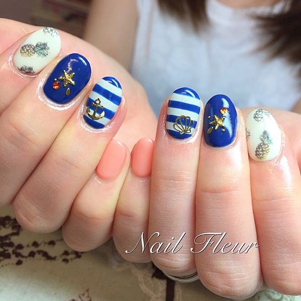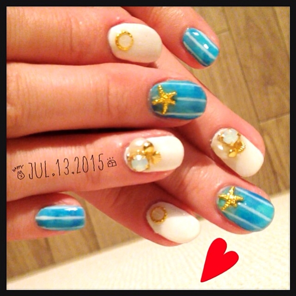 ピーコックネイルと合わせれば、ポップなマリンネイルに!