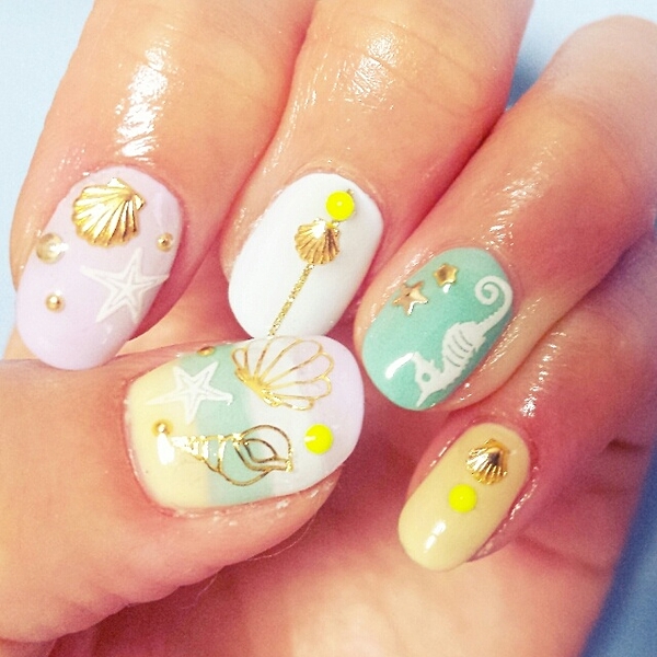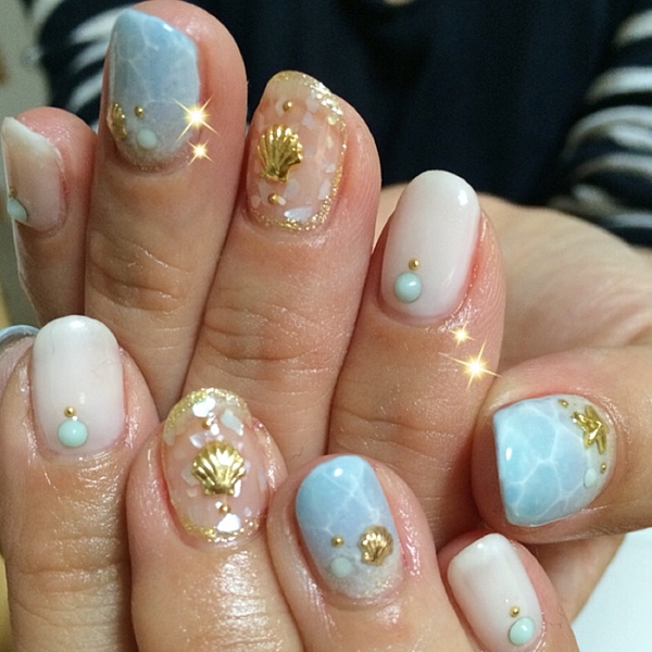 マリンネイルによく合うスタッズは、やっぱりシェル!