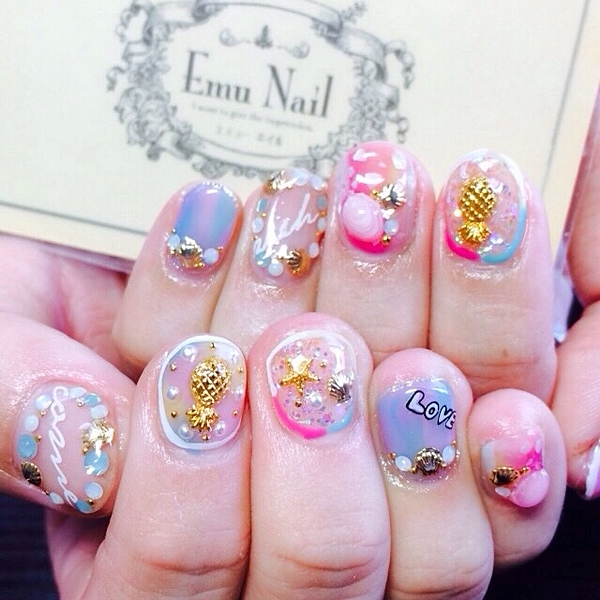 一味違ったマリンネイルにするなら、パイナップルスタッズがおすすめ♪