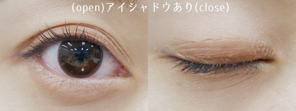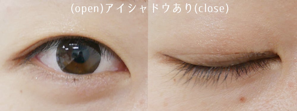 ちなみにアイシャドウを塗った状態だと、このような感じ。アイシャドウの上から塗ってもベタッと感がなく、違和感や不自然さはなし。パウダータイプのアイシャドウであれば、普段と同じメイクでも問題なさそうです!