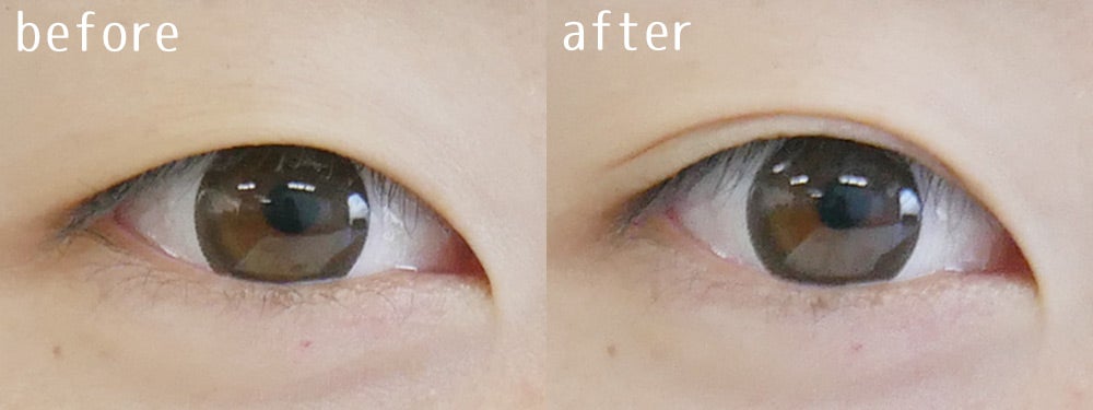 編集部の他のメンバーの目元でも試してみました。元々は奥二重なのですが、塗ったあとは目頭から目尻まで、キレイなラインがしっかりと入ってます。「塗った後のペタペタ感もなく、仕上がりも自然で気に入りました!」と高評価。