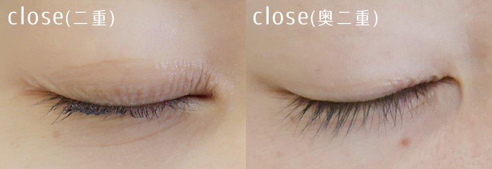 二重まぶたと奥二重で節目の状態を比べてみると…?二重だと液をしっかりめにつける必要があるので、つっぱり感やシワがやや気になりますが…。奥二重だと閉じた状態も本当にキレイで、塗っている感が一切ありません。むしろ本当にナチュラルすぎて、どの範囲に塗ったのかも分からないレベルです。