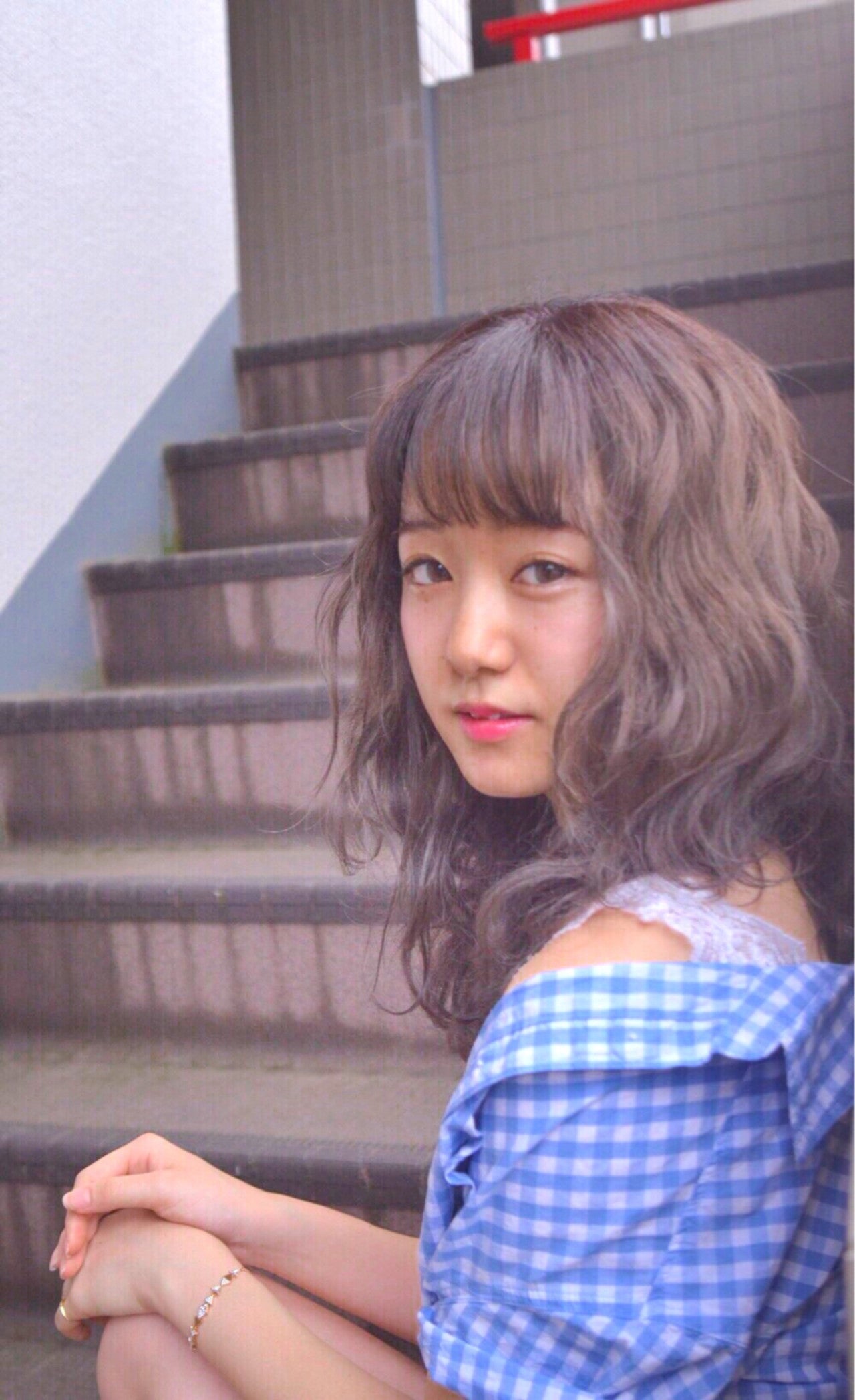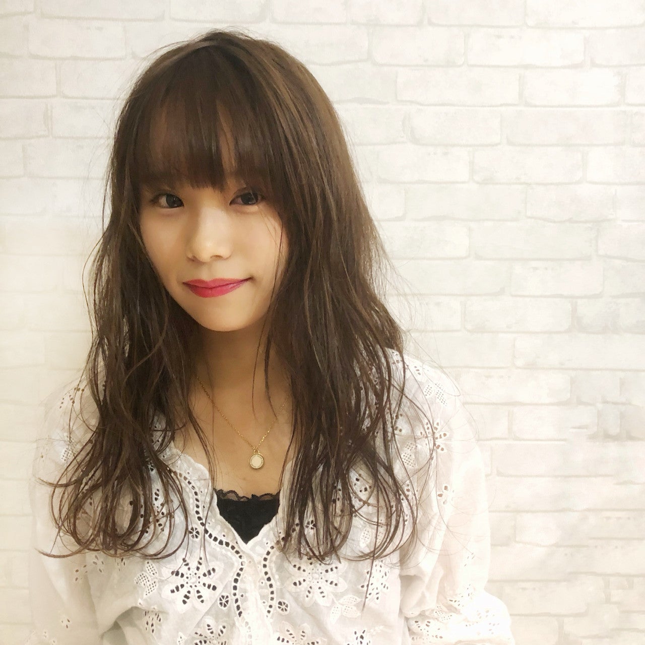 ふわふわのウェーブに、オン眉の前髪♪ガーリーで可愛らしいヘアスタイルです♡