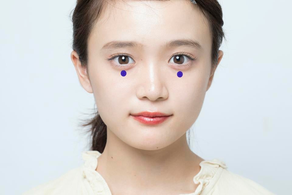 人差し指を骨のキワに引っ掛けるようなイメージにすると押しやすいですよ。眼球を圧迫しないように注意してください。