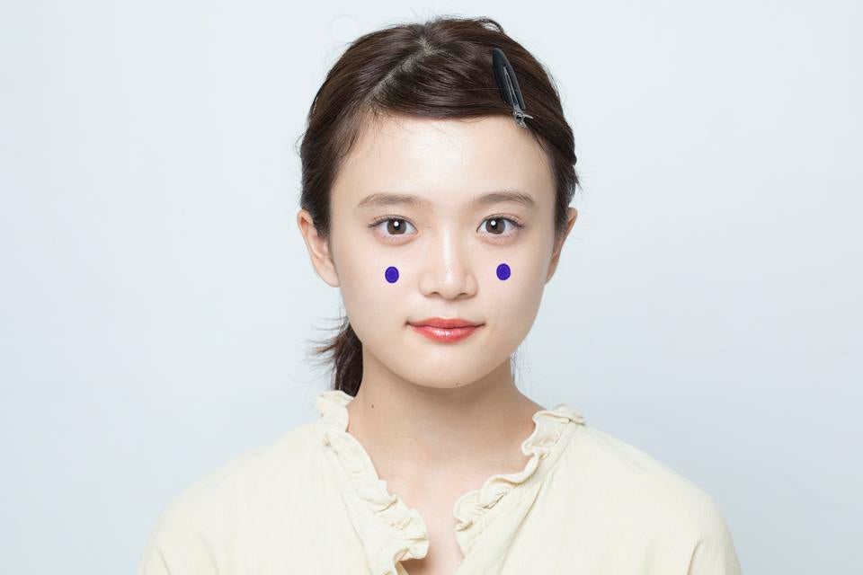 頬の血液循環を良くし、美肌に導くツボです。場所は図の通り。