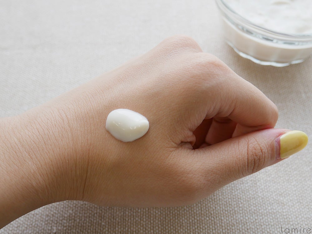 ①酒粕パックを適量手に取り、顔全体に伸ばす。