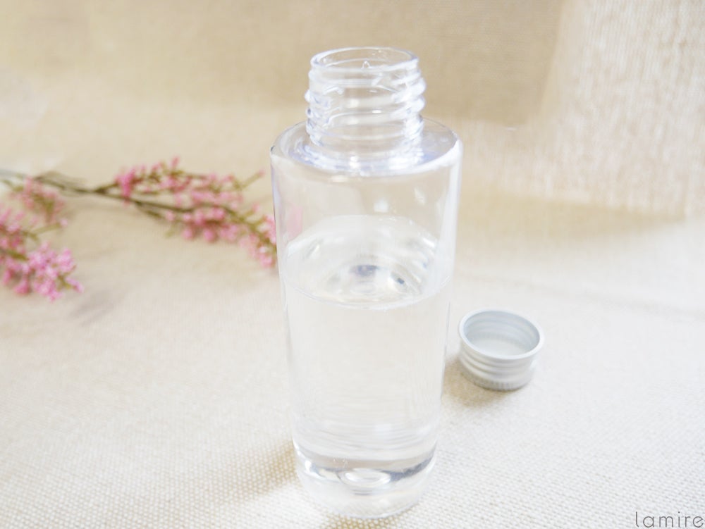 完成した化粧水を使ってみると、グリセリンが入っているので少しとろみのあるテクスチャー。香りは市販の日本酒化粧水と変わらないですよ。保存期間は2週間で要冷蔵なので小さめサイズで作るのがおすすめです。